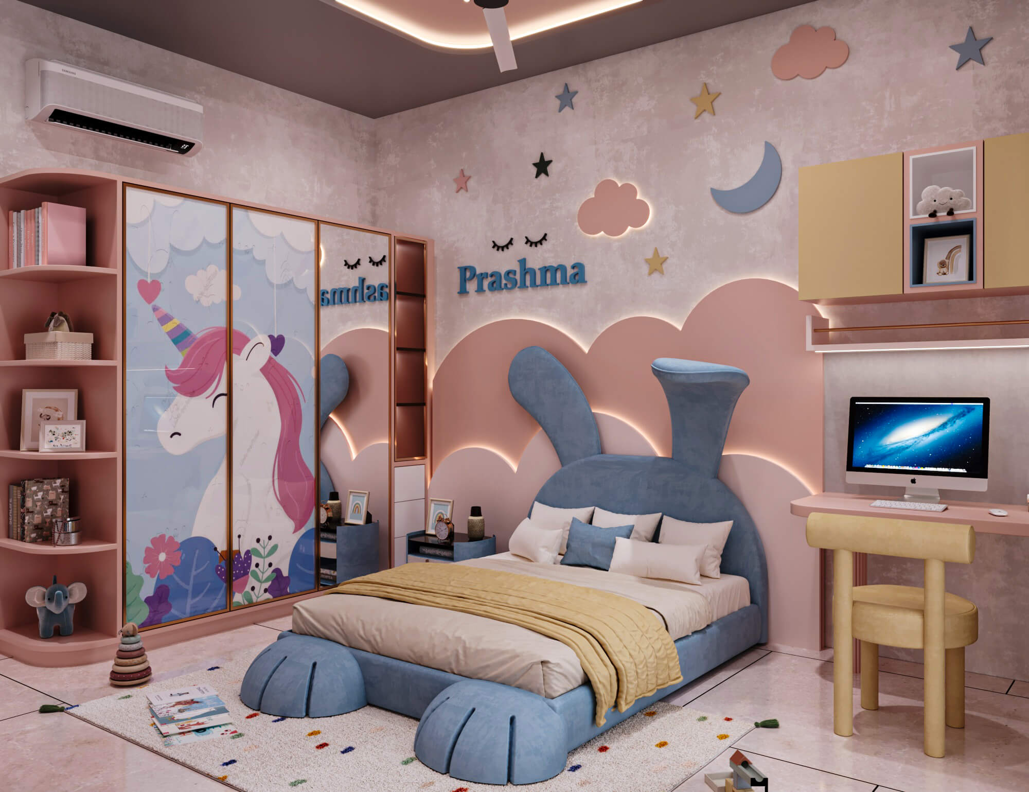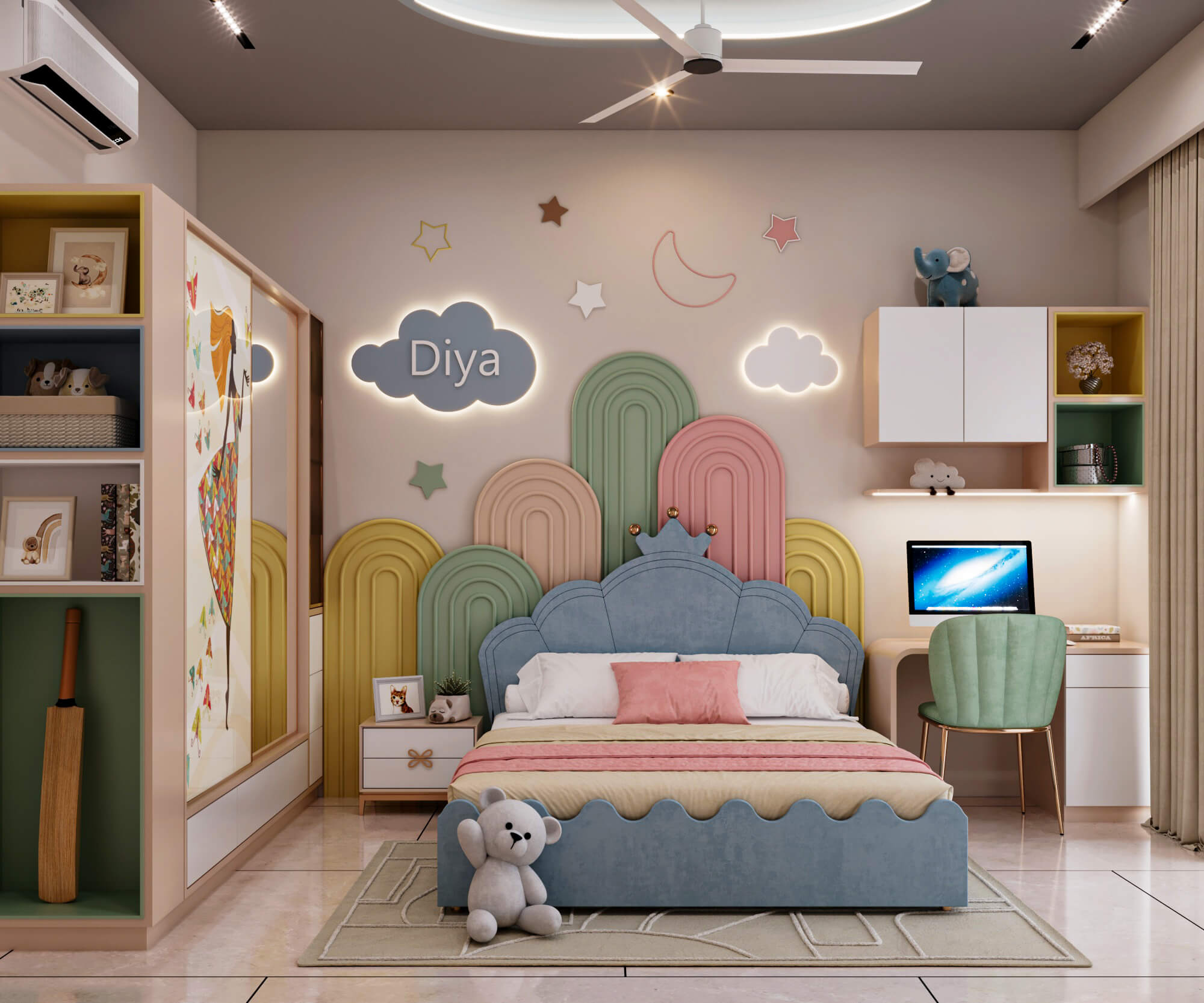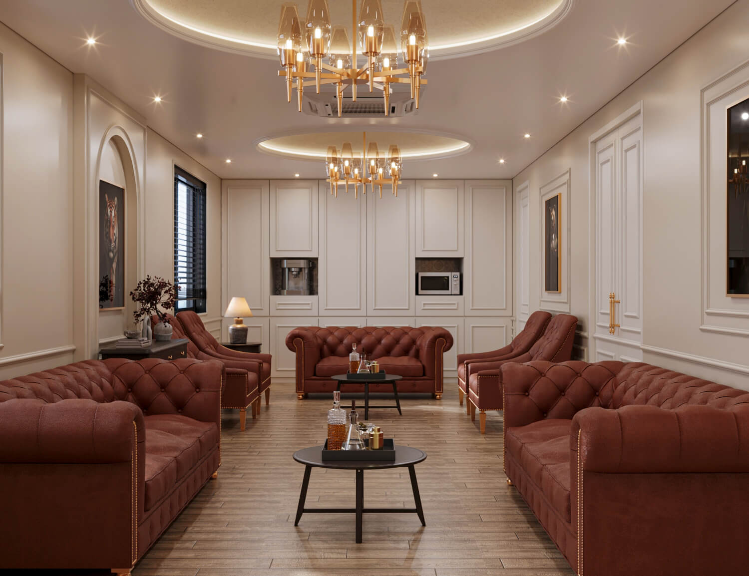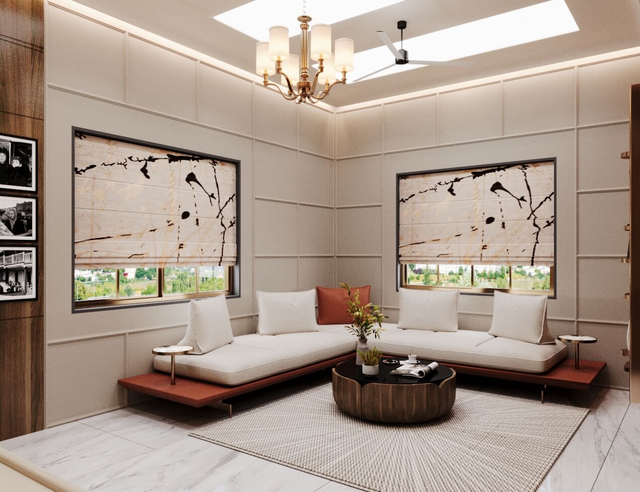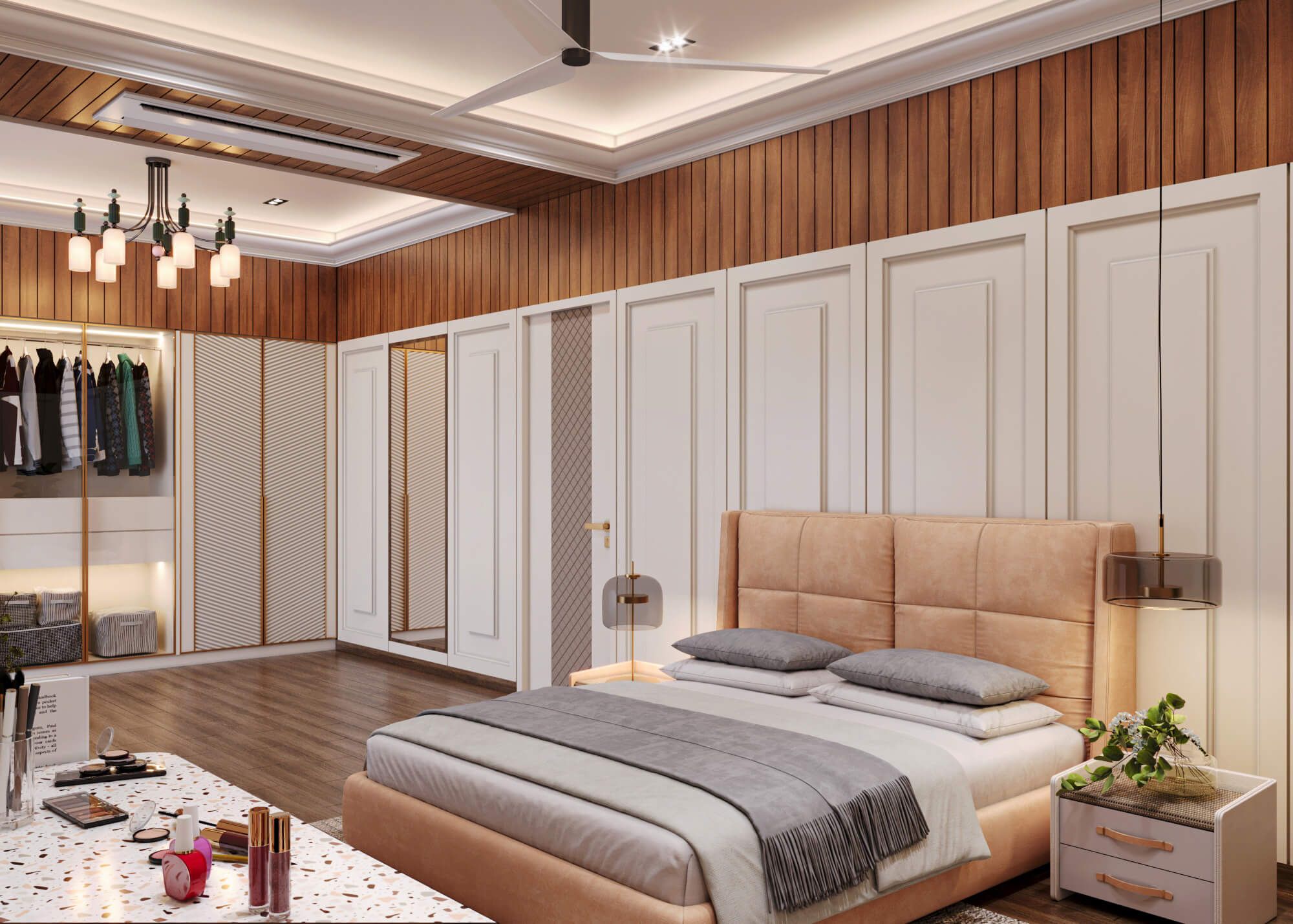 The living area sets a refined tone with plush seating, warm lighting, and bespoke wall detailing. Bedrooms are designed as personalized retreats—ranging from a grand master suite with rich textures to playful kids’ rooms filled with color and creativity. The entertainment room offers a stylish escape for leisure, while dining and kitchen spaces combine openness with modern practicality.