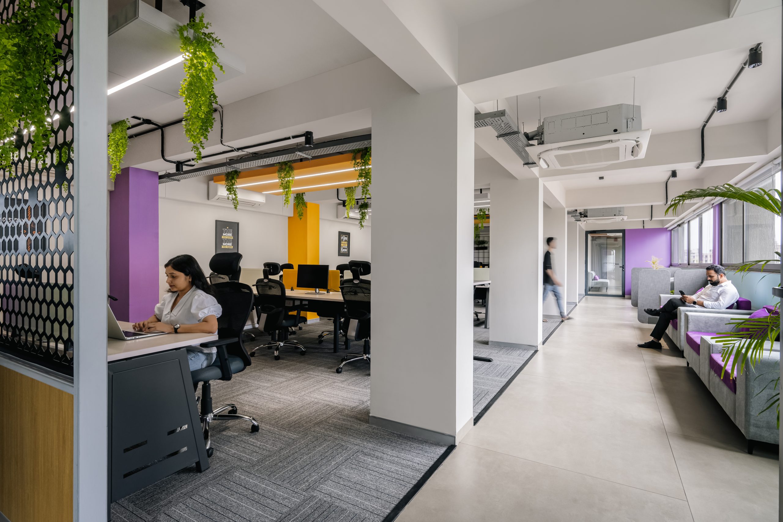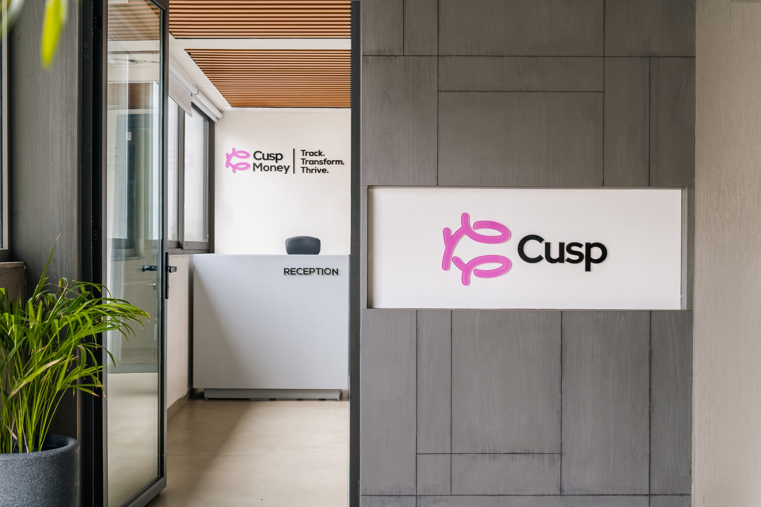 Designed for Cusp Money, an IT firm based in Gala Hub ANX, South Bopal, Ahmedabad, this workspace blends functionality with flexibility.