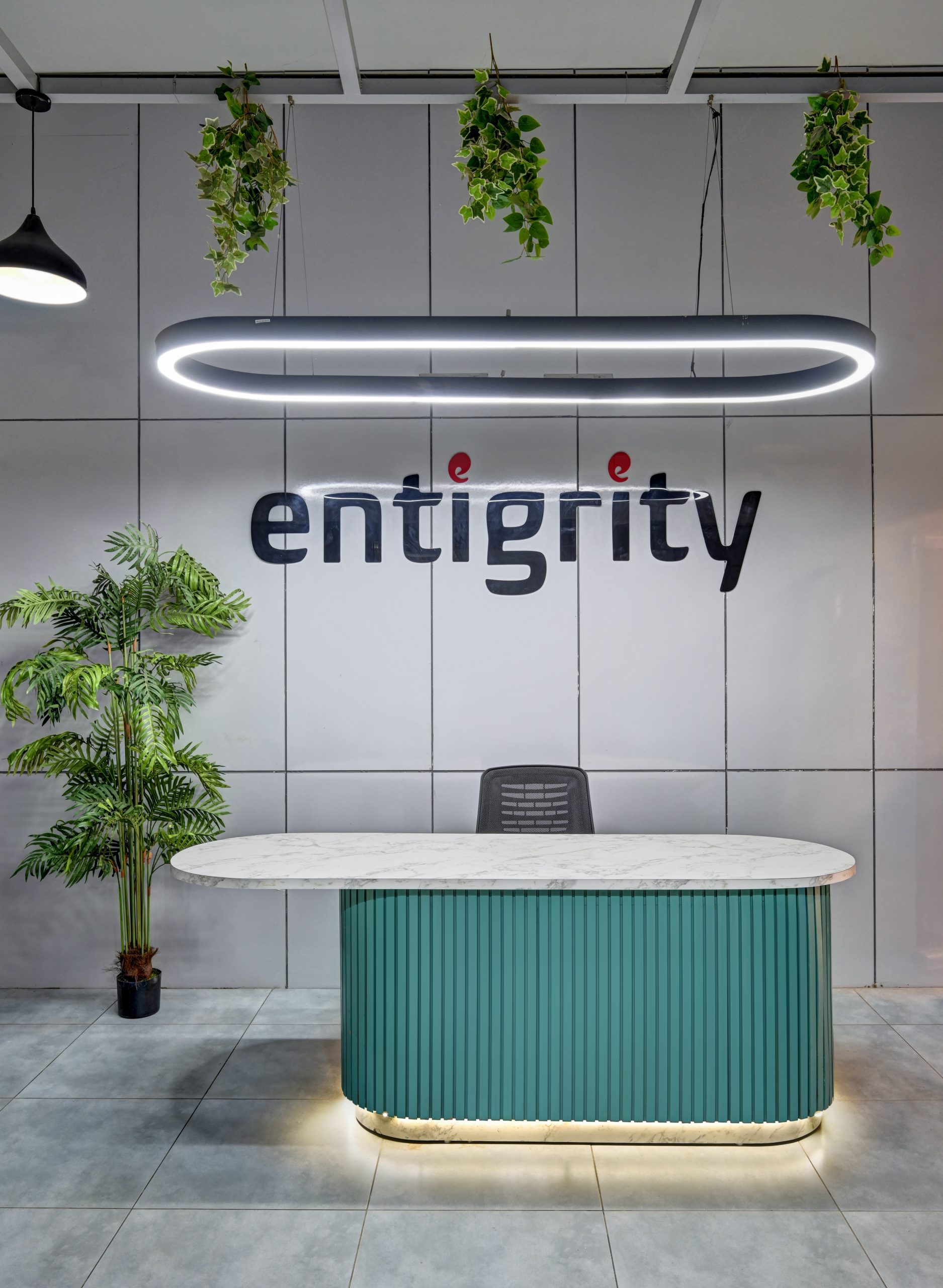 Entigrity’s office interior is designed with a blend of minimalism and creativity.