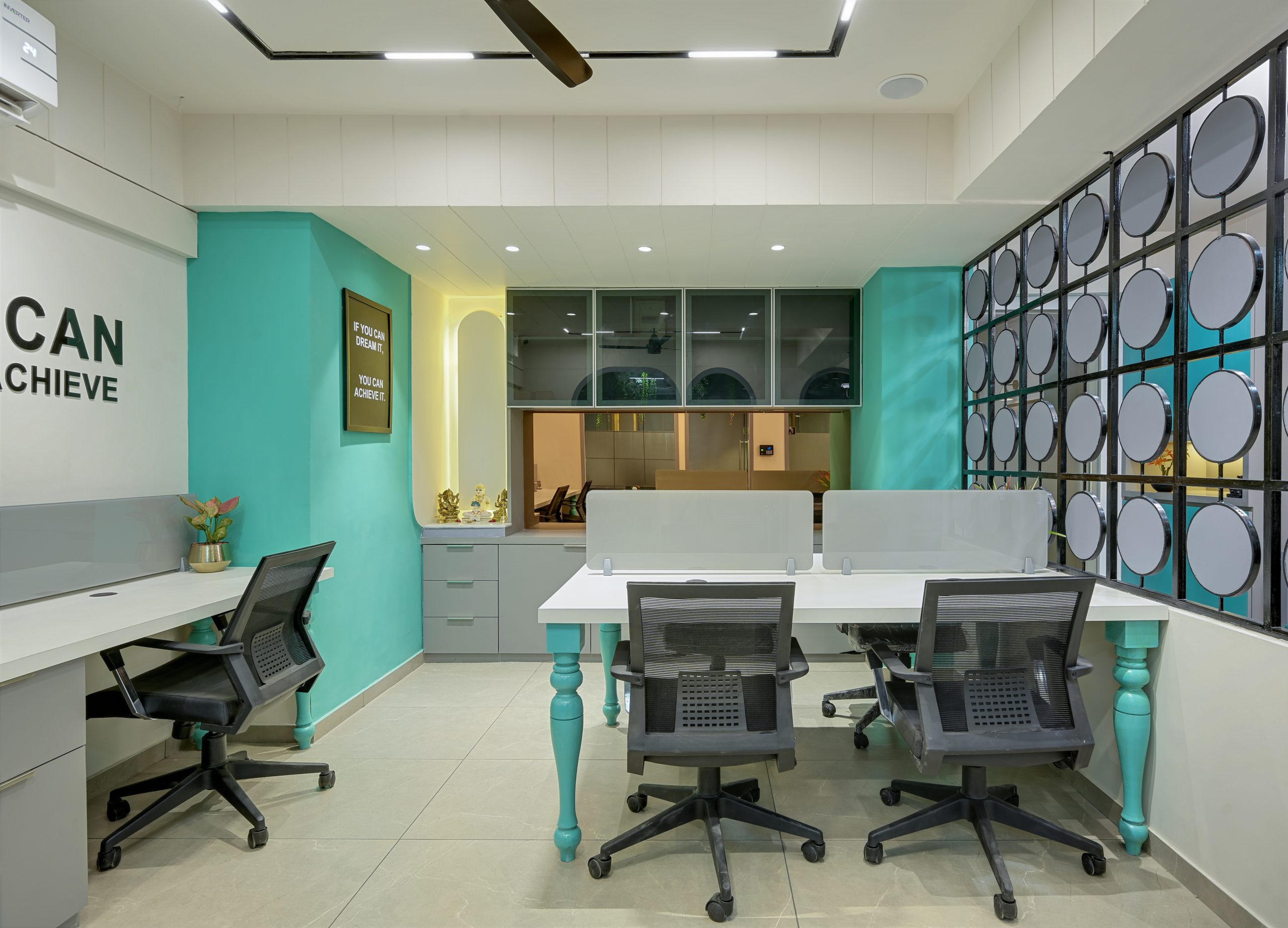 This balanced design ensures the office feels welcoming and warm while remaining productive and stylish. It caters to diverse preferences, appealing to those who appreciate the richness of traditional design and the practicality of modern aesthetics.
